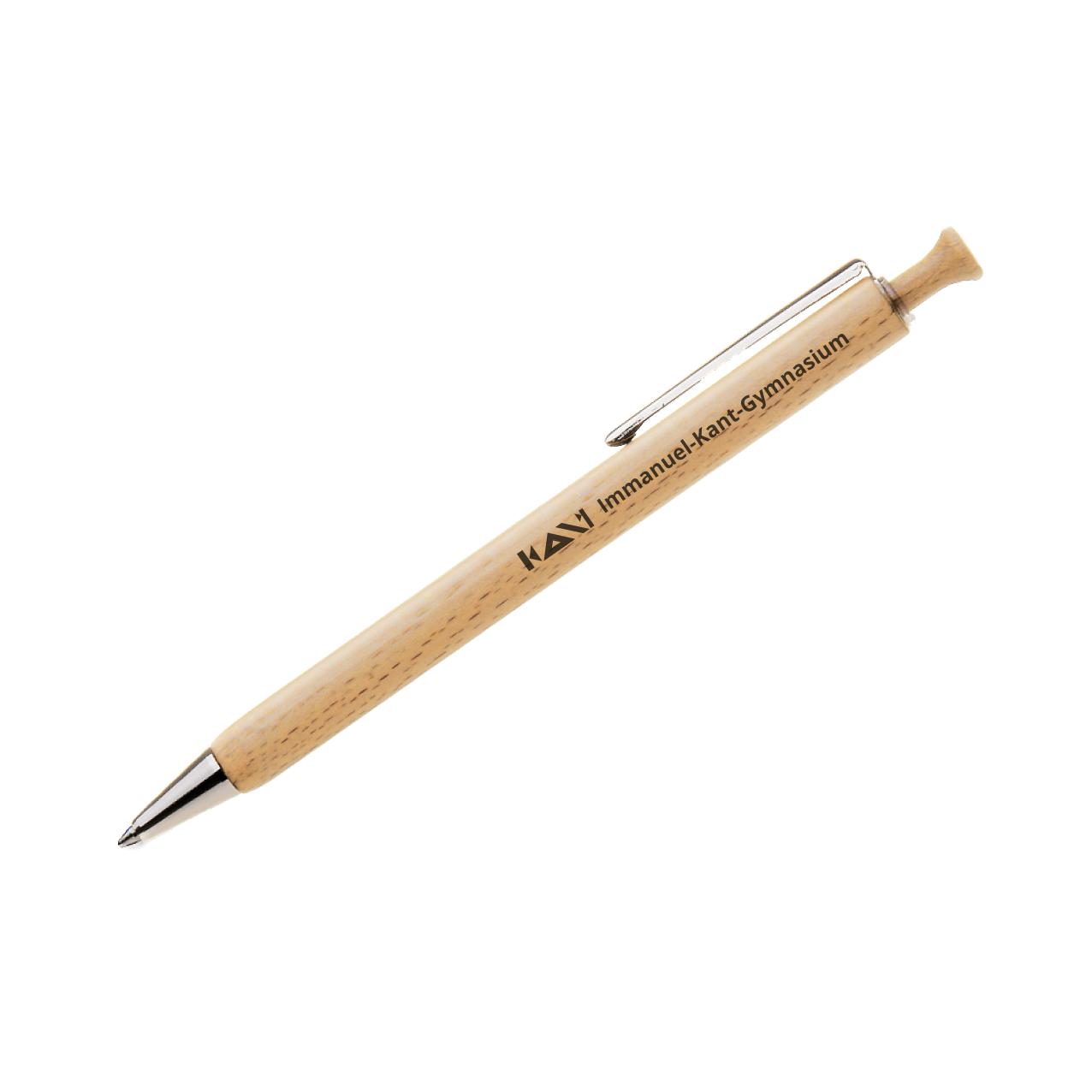 Der Kugelschreiber trägt die Aufschrift KANT - Immanuel-Kant-Gymnasium und besteht aus hochwertigen Materialien: Holz und Metall.